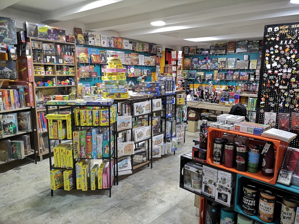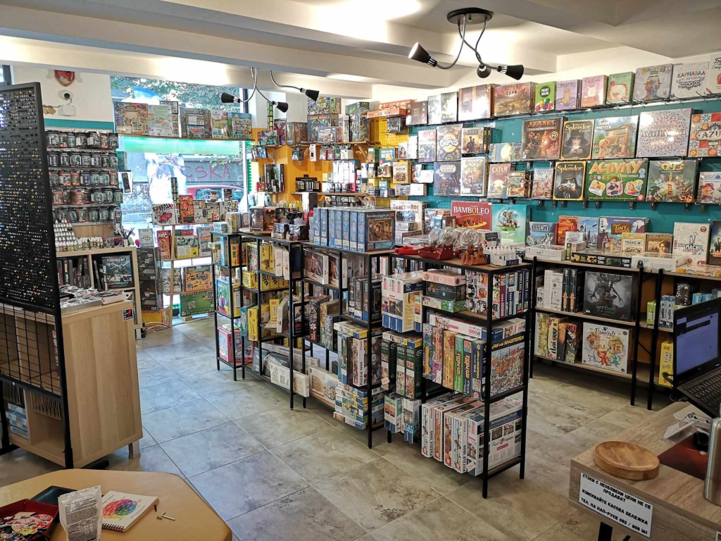 Там предлагаме множество български и английски заглавия на стратегически, семейни и парти настолни игри, както и много други неща. Двуизмерни и триизмерни пъзели, фенски чаши и ключодържатели, зарчета, кубчета “Рубик”, книги и аксесоари за ролеви игри, миниатюри и бойчки за тях, катови игри, като MTG, Yu-Gi-Oh, Pokemon, Flesh & Blood, Lorcana и всякакви такива неща. Стараем се да го поддържаме добре зареден, шарен и да има за всекиго по нещо.